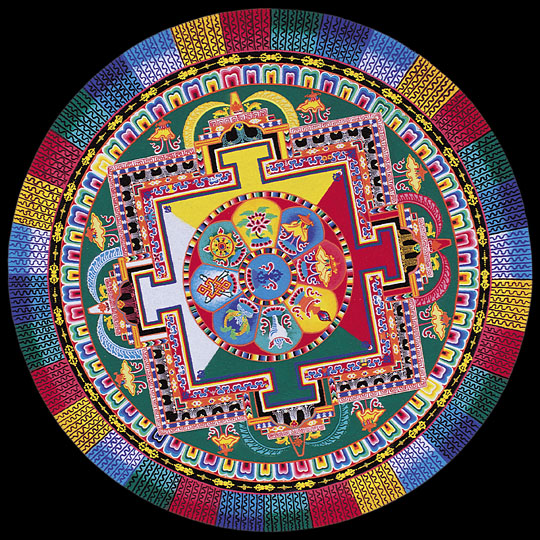 A mandala, or Tibertan sand painting, is created during hundreds of hours of work before it is washed away in a body of water following prayers.